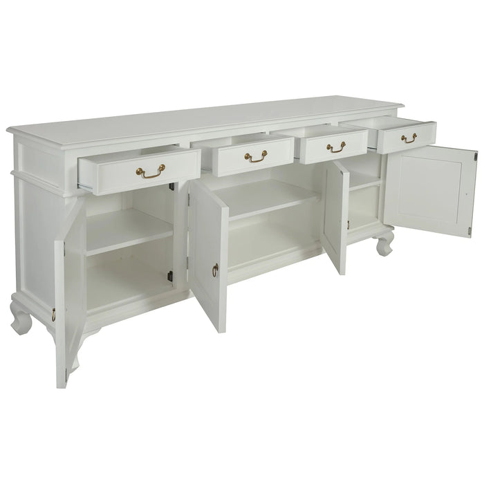 - Paris House Queen Annie Solid Wooden Timber French Sideboard 4 Door 4 Drawer 200cm Buffet Table - White CFS168SB-404-QA-WH